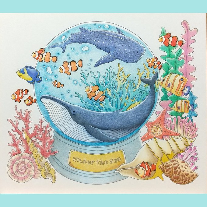 1 39 8月中旬の作品。 夏らしい塗り絵をしたくて、こちらの線画を選びました。 海の中にいるようで、心地よく塗ることができました。 #大人の塗り絵 #色鉛筆 #ふしぎな森の動物たち #浜野史 さん 22/10/16 15:56