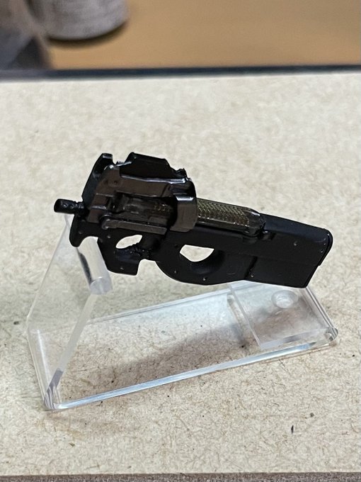 #深夜の小武器庫部 お題 「マイベストリトルアーモリー」 良い銃の日という事で、遅ればせながら。 なんだかんだでP90をちょくちょく作ってます。いまだに私の中では近未来銃の代表格です。 #リトルアーモリーを装備 #メガミデバイス