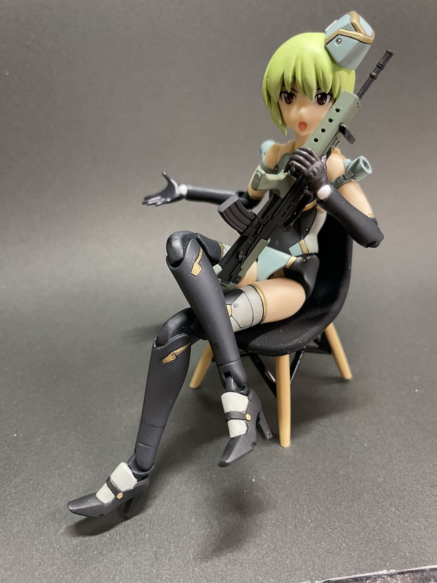 M4A1モデルさんに装備してもらいました。頭身高めに作ったモデルさんですが、いささかポージングに不便を感じて来ました。そろそろ改修して見ようかしら。 #リトルアーモリーを装備 #リトルアーモリー #メガミデバイス