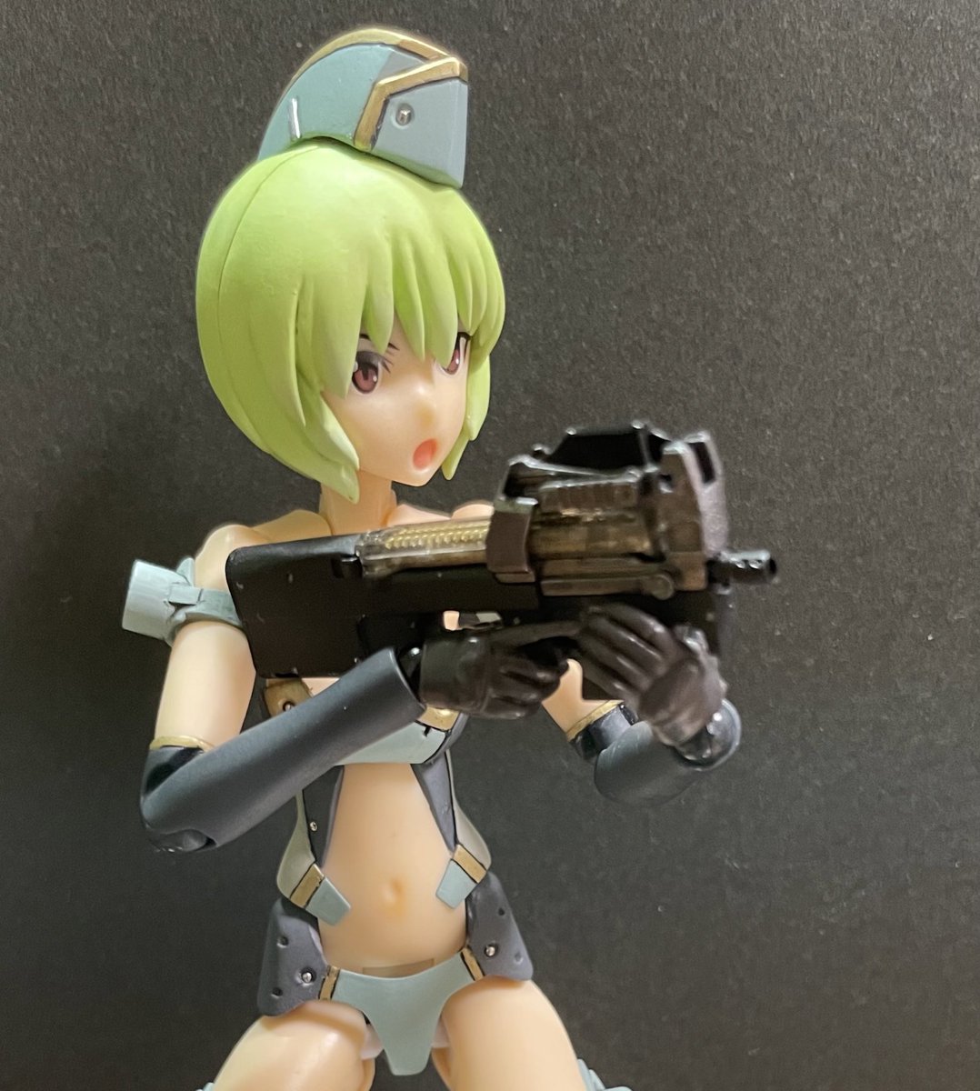 P90モデルさんカスタム完成。ちょこっとフォルムを未来っぽく(笑)改造して、カラーリングで遊んでみました。こんな遊び方も楽しいですね。 #リトルアーモリーを装備 #リトルアーモリー #メガミデバイス