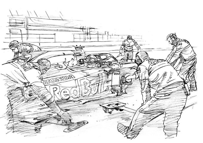 鉛筆のラフスケッチにクリスタ着色。久しぶりにHONDAを描きました^_^。 #AlexanderAlbon #ToroRosso