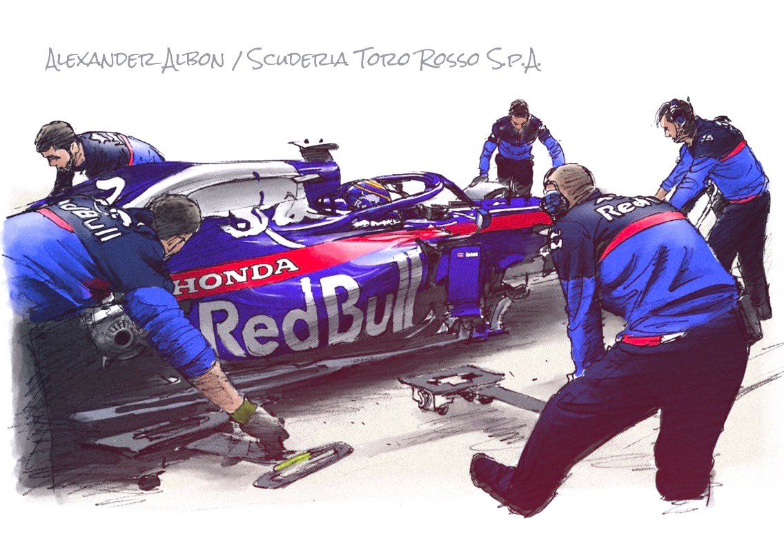 49 192 鉛筆のラフスケッチにクリスタ着色。久しぶりにHONDAを描きました^_^。 #AlexanderAlbon #ToroRosso 19/03/15 19:54