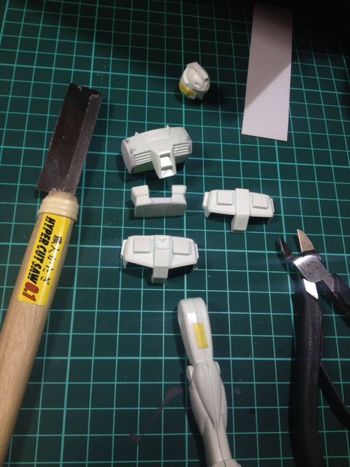 0 1 延長や幅増しなどの具体的な数値やプランは決めてないが…とりあえず精密ノコギリでブッタ切る。旧キットをイジるのに最も大事なツールがノコギリだわ。 #旧キット #ガンプラ 20/04/24 01:04