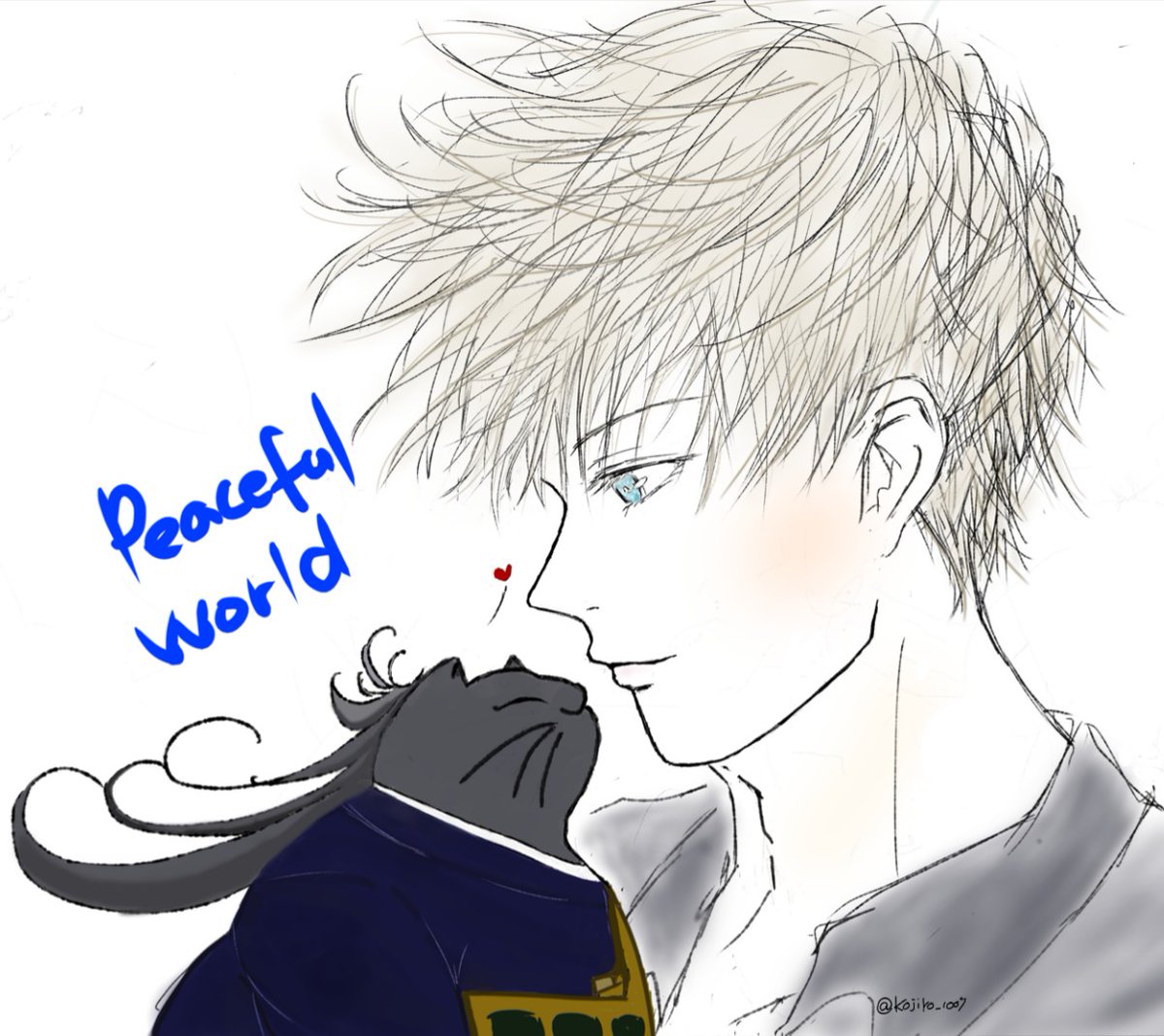 猫の日に描けなかったネコ?と…親友の二人と… 平和な世界🌈を願って… #呪術廻戦0 #呪術廻戦ファンアート #呪術廻戦イラスト #呪術廻戦好きな人と繋がりたい #呪術廻戦絵描きさんと繋がりたい #五条悟 #猫の日 #絵描きさんと繫がりたい