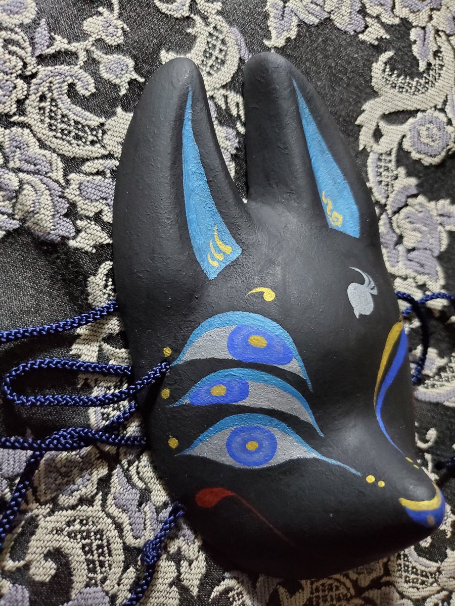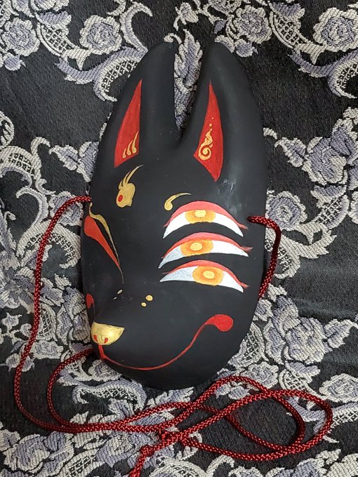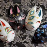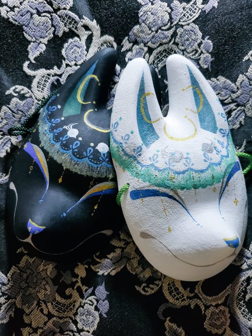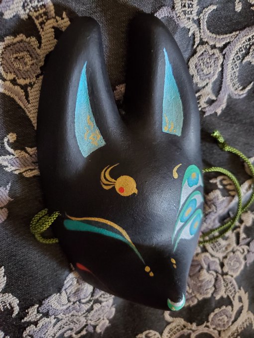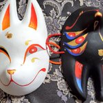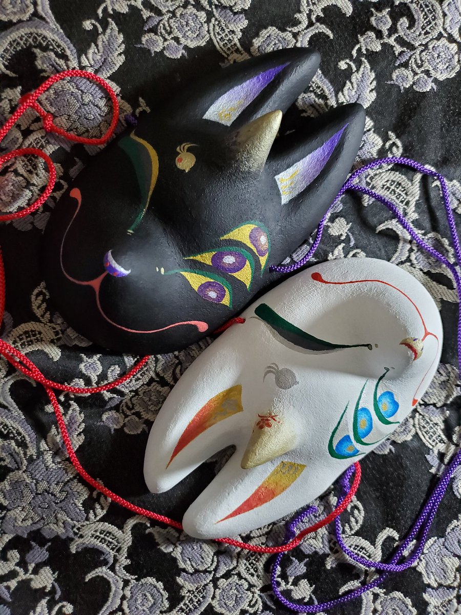 5/3深川お化け縁日の新作ミニ面2枚絵付け完了しました。前回のお化け縁日で出した丹頂狐の黒バージョンです。 他にも眼鏡アクセ多めに作りました👓️今回イヤリングorピアスへの交換も承りますので希望の方は気軽にお声かけ下さい! #深川お化け縁日2023 #深川お化け縁日