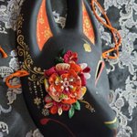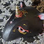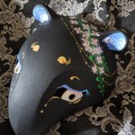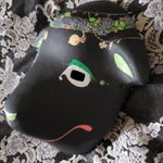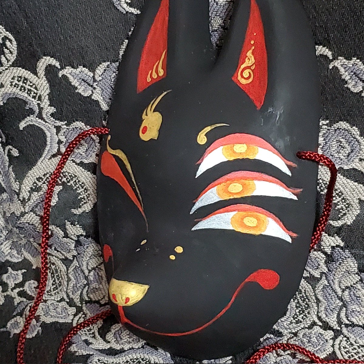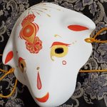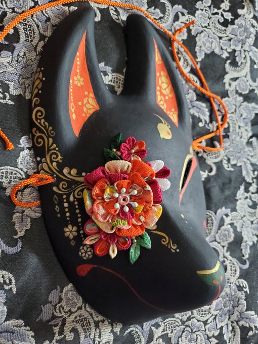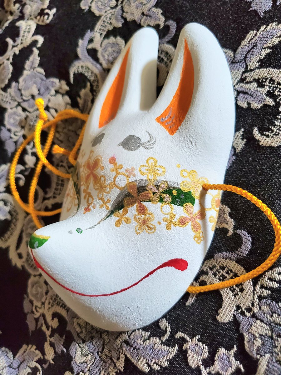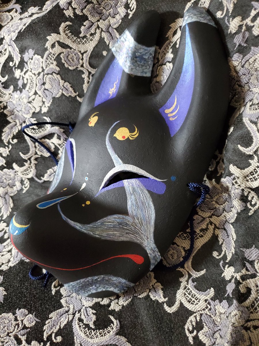 5/3深川お化け縁日の新作ミニ面2枚絵付け完了しました。前回のお化け縁日で出した丹頂狐の黒バージョンです。 他にも眼鏡アクセ多めに作りました👓️今回イヤリングorピアスへの交換も承りますので希望の方は気軽にお声かけ下さい! #深川お化け縁日2023 #深川お化け縁日