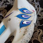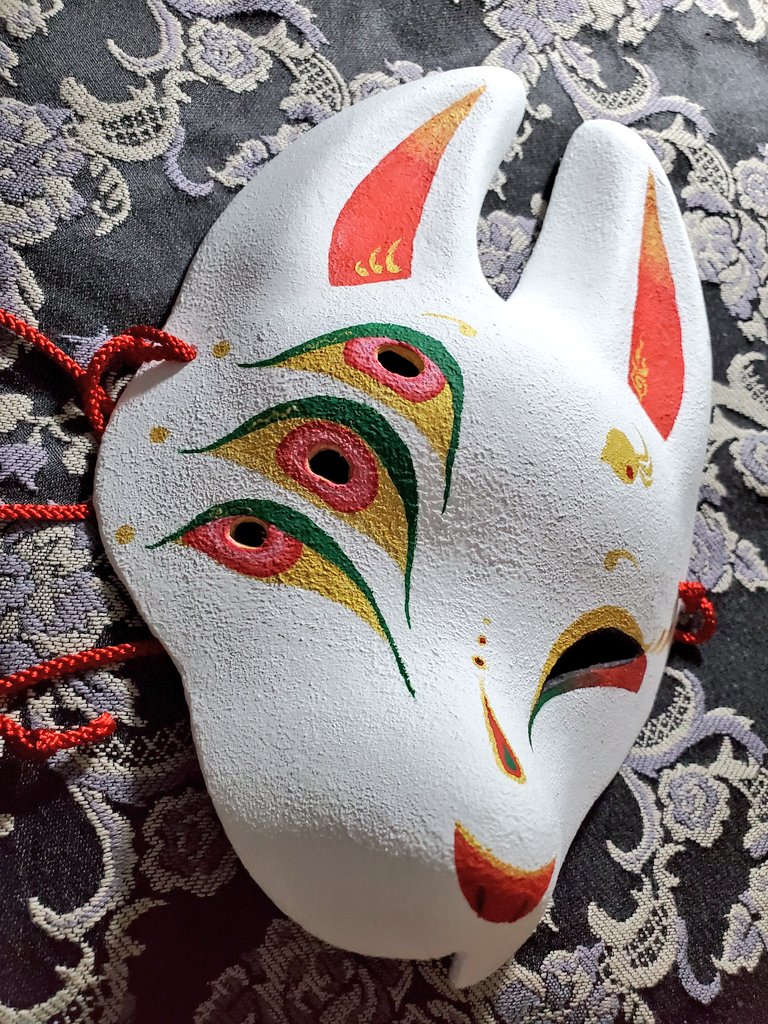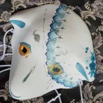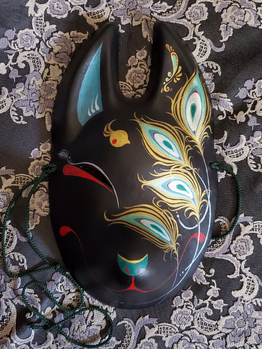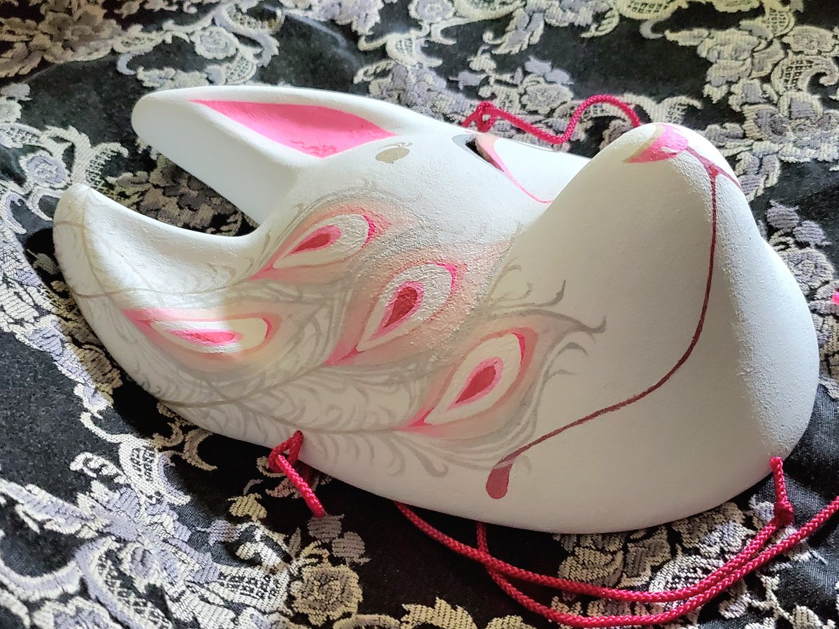 ・1号 ・多眼妖狐面 ・目隠しレース面 ・狐×孔雀の羽根×多眼面 初めて作った張り子面とこかとり堂と言えば!と自信を持って出せる子達ですね #この作品がなかったら今の自分は存在しなかったと言っても過言ではない作品