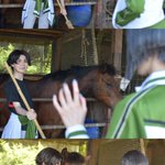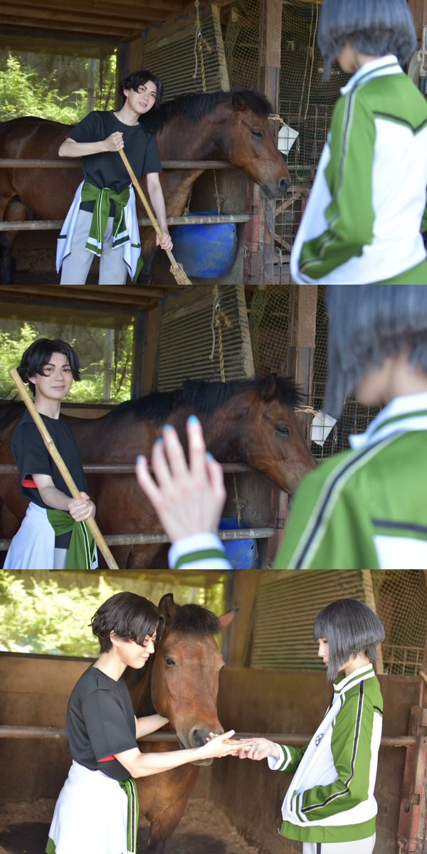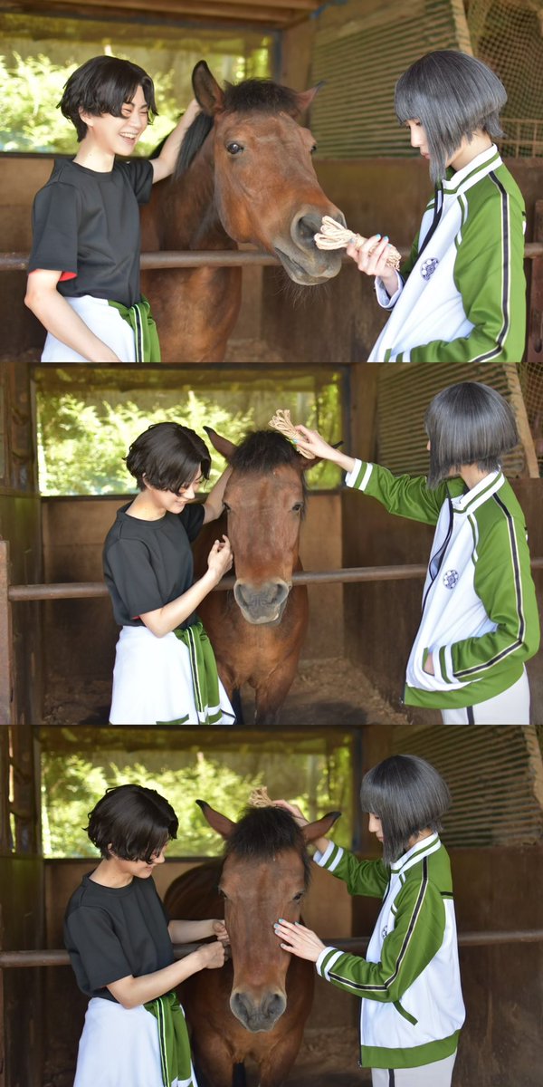 cos/ ⚠︎.5ネタ . 「まつ、そんなところで見てねーで撫でてみたらどうだ?」 「……いや、やめておくよ。怖がらせてしまうだろうから……」 「とにかくやってみろよ。 な?大丈夫だっただろ?」 「そうだね。穏やかで優しい子だ……」 . 📷さみだれさん ※ロケ地許可済み