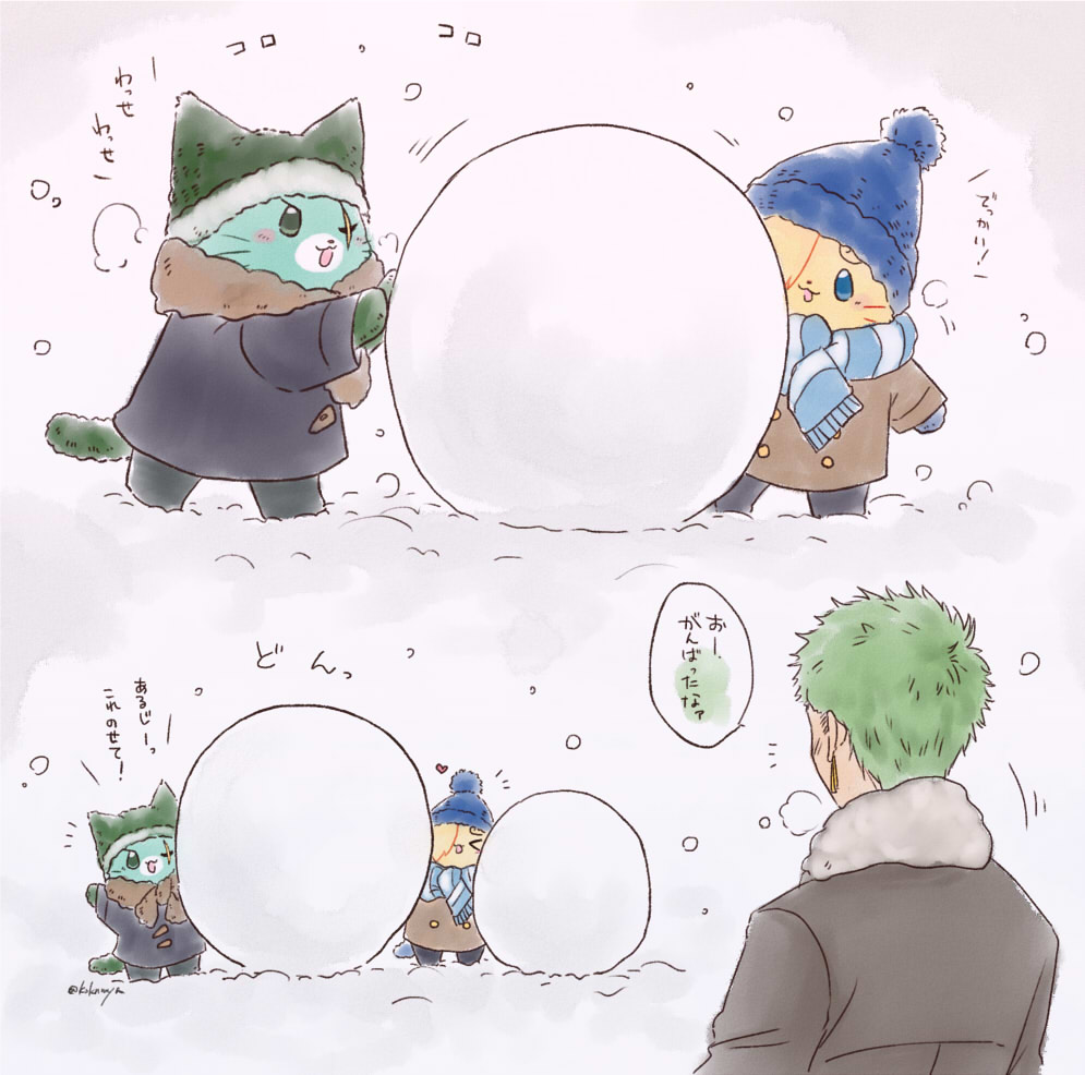 雪に勝つために雪だるさん作るゾサにゃん⛄️ (保護者つき)(現パロゾサにゃんです) もういっこ続きます😂