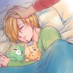 すやすやかいぬし&ゾサにゃん(˘ω˘)(&手だけの出演ゾ) ゾはこのあと背中側から抱き込んで欲しい(希望)