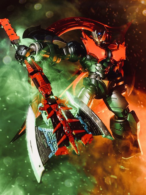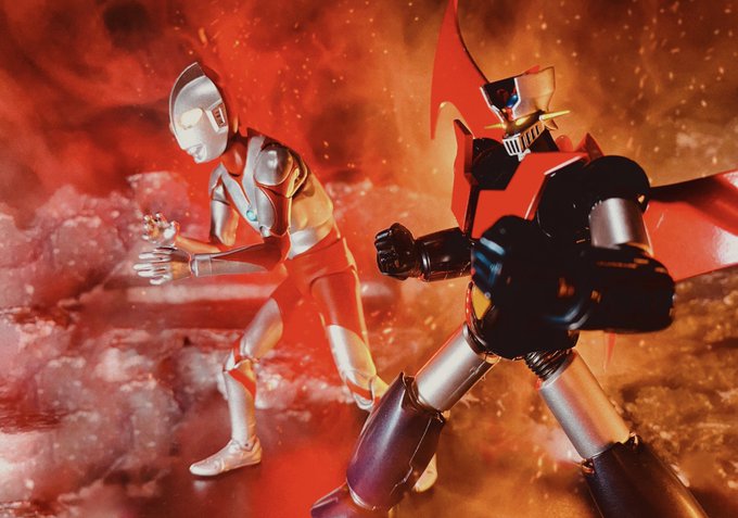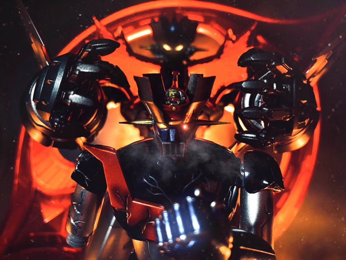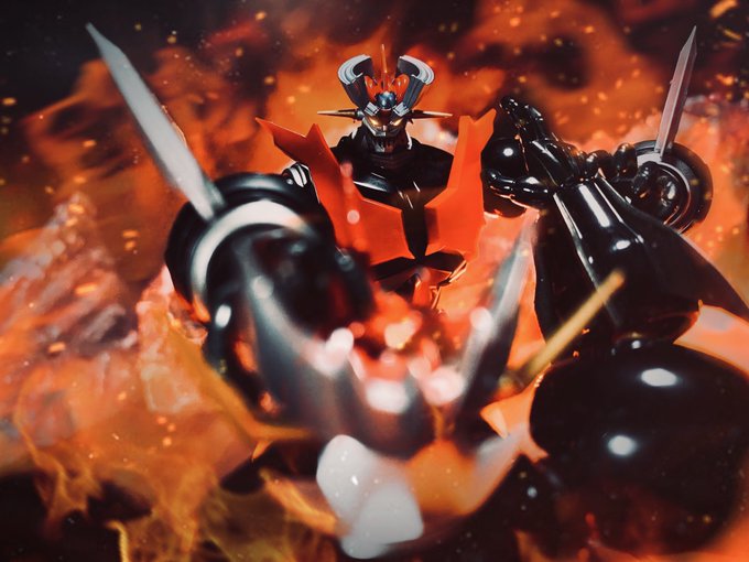 #夜のフィギュア撮影会 3/5 お題 『空』 『空』がわれる 炎が舞う 巨大魔神見参 ここまできたらもう誰にも抑えられない #おもちゃ撮影会 03/05(日)「手」 振りかざしたその『手』で お前は何を掴むのか #マジンガーZ