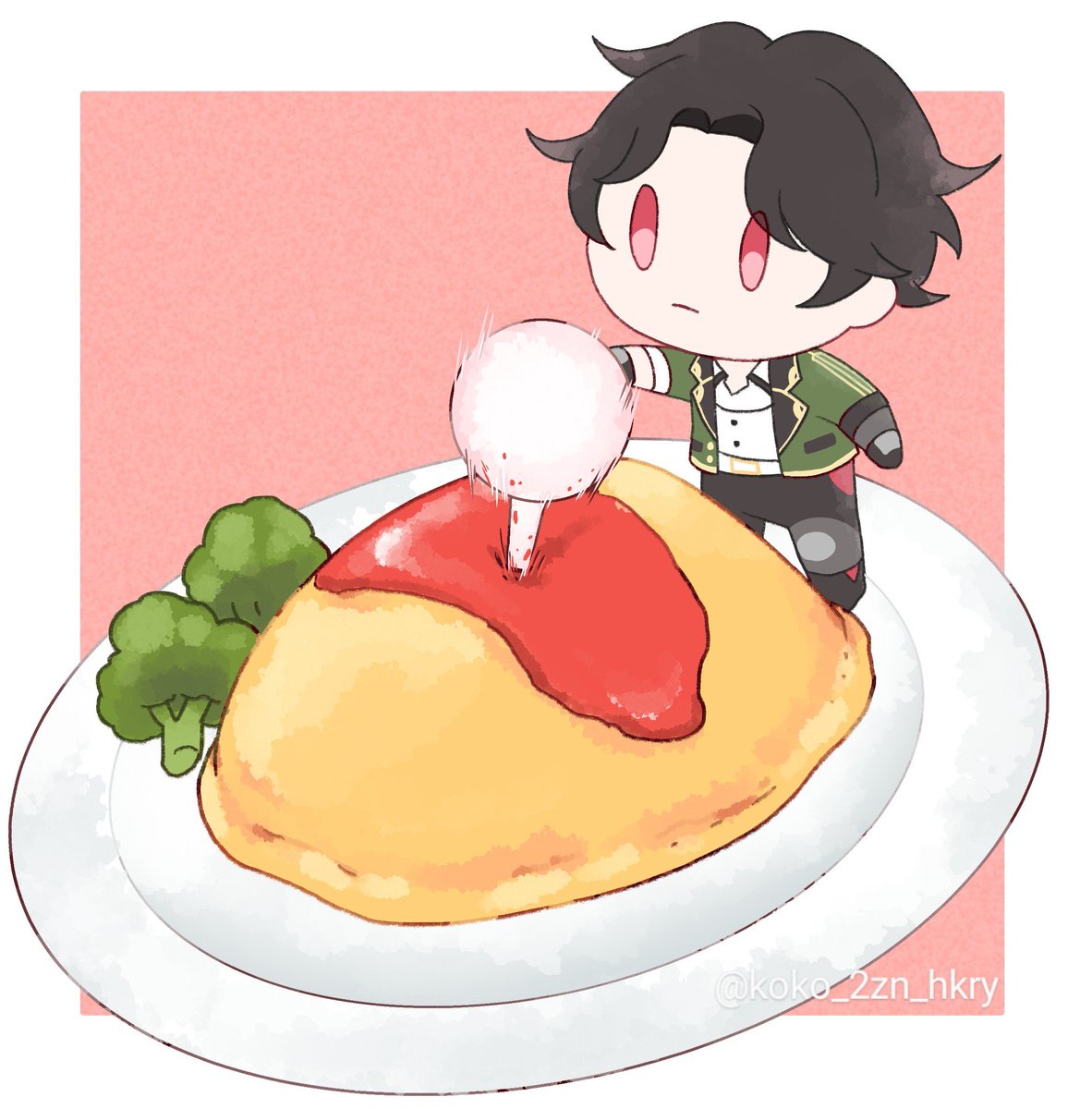 15 61 どうしても食べさせてあげたいから🍰食べてるぶぜんくん描きました おめめキラキラ😌 22/12/02 00:24