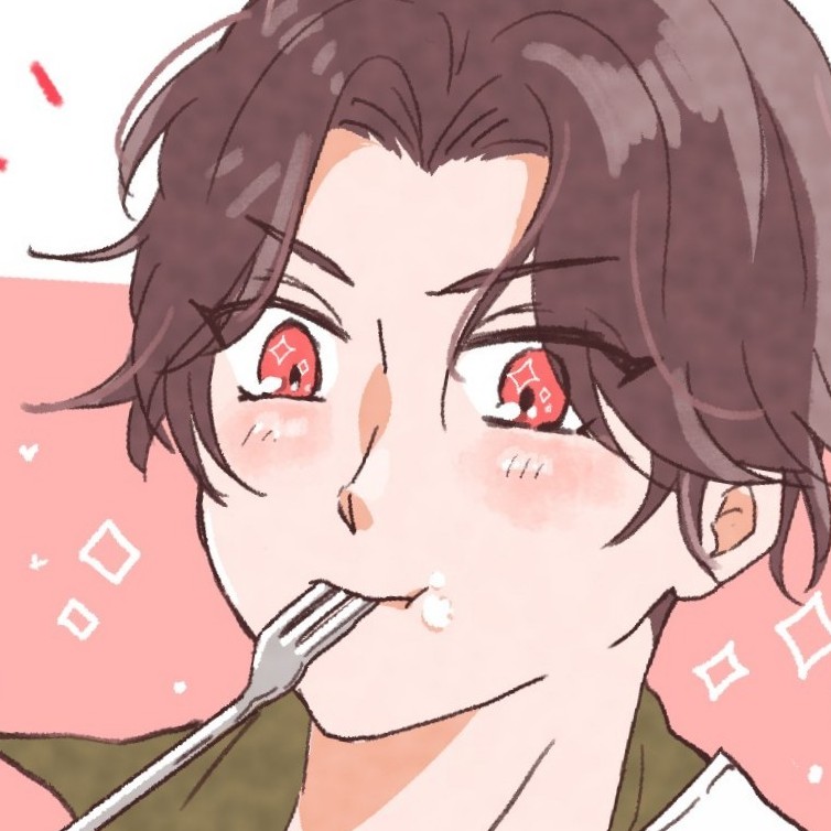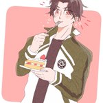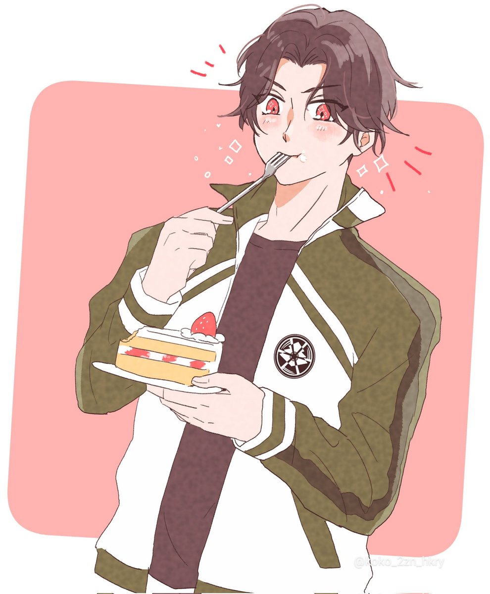 どうしても食べさせてあげたいから🍰食べてるぶぜんくん描きました おめめキラキラ😌