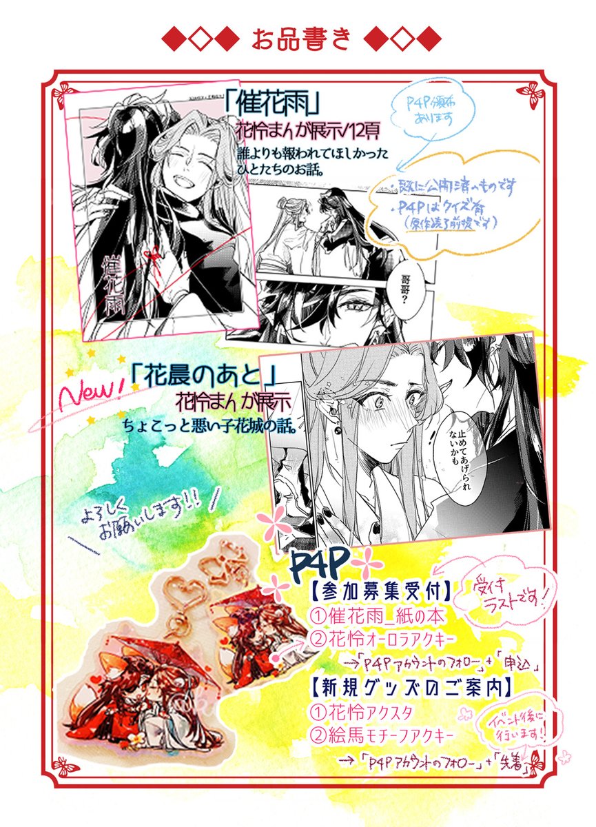 🌸花憐日和ご案内🌸 白妙お7「恋戦」で参加しています。漫画展示と紙本&アクスタの再募集とかお知らせとか~~です!よろしくお願いします❤ #花憐日和