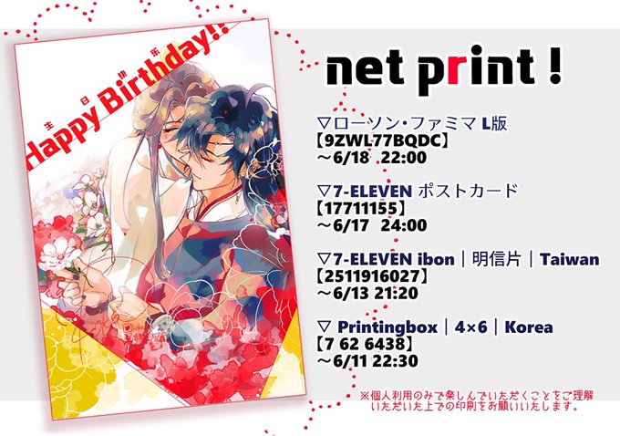 🇯🇵🇹🇼🇰🇷ネットプリント登録しました〜〜良かったら!生日快樂🦋🌸 #0610花城生日快乐