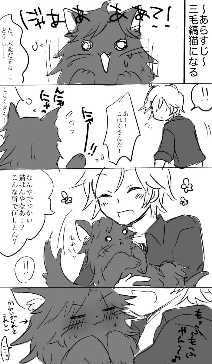 #斑こはゆるワンドロ +10分ぐらい お題「ヘアアレンジ」お借りしました! 座ったまま居眠りしてた三毛縞