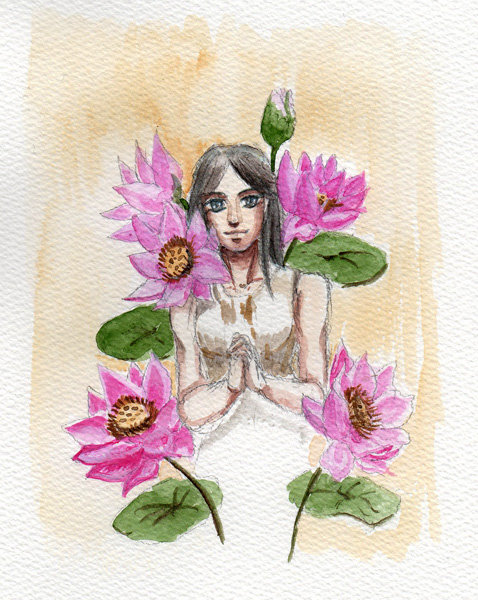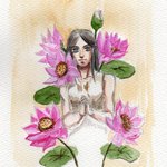蓮。(明日3/17、ギャラリーポランカにて『ポランカ絵画展 with FLOWER』が開催。ぜひ見に来てください。というための絵) #イラスト基地 #絵描き人