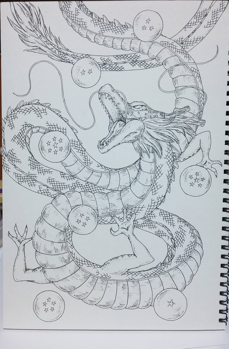 神龍出来ました|ω・`) 色塗り大変だった|ω・`) #絵 #水彩画 #イラスト #ペン画