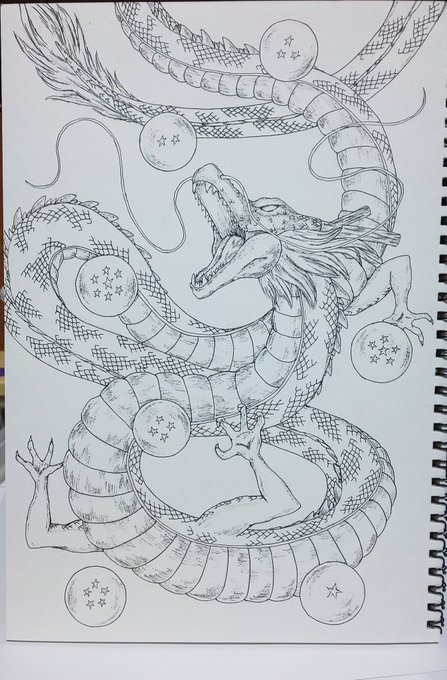 0 17 神龍出来ました|ω・`) 色塗り大変だった|ω・`) #絵 #水彩画 #イラスト #ペン画 20/10/27 22:41