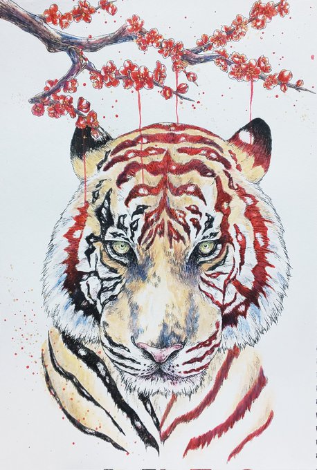 0 11 完成(`・ω・)b #絵 #イラスト #ペン画 #水彩画 #虎 22/01/15 20:34