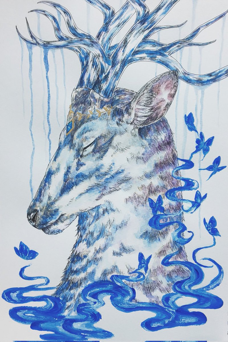 今回はアクリルも使用してみました(*´ω `*) スマホで写真撮ると青が強く写るのがな〜。実際はもう少し柔らかい感じです。 #絵 #イラスト #ペン画 #水彩画