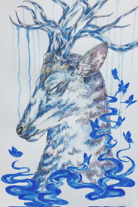 鹿〜 最近また全然描けない(´;ω;`) #絵 #イラスト #ペン画