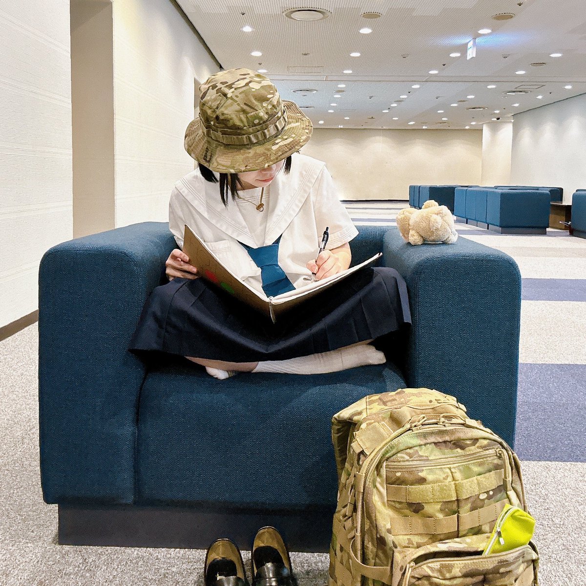 浅草氏と戦車💥 戦車(?)初めて見た‼ 高機動車にも乗せて頂きました〜🚍 めっちゃ楽しかった… #映像研 #大阪コミコンコスプレ