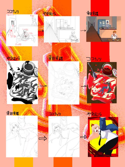 3 9 3人でチェンソーマンを描いたよ〜✌️ 22/11/23 21:58