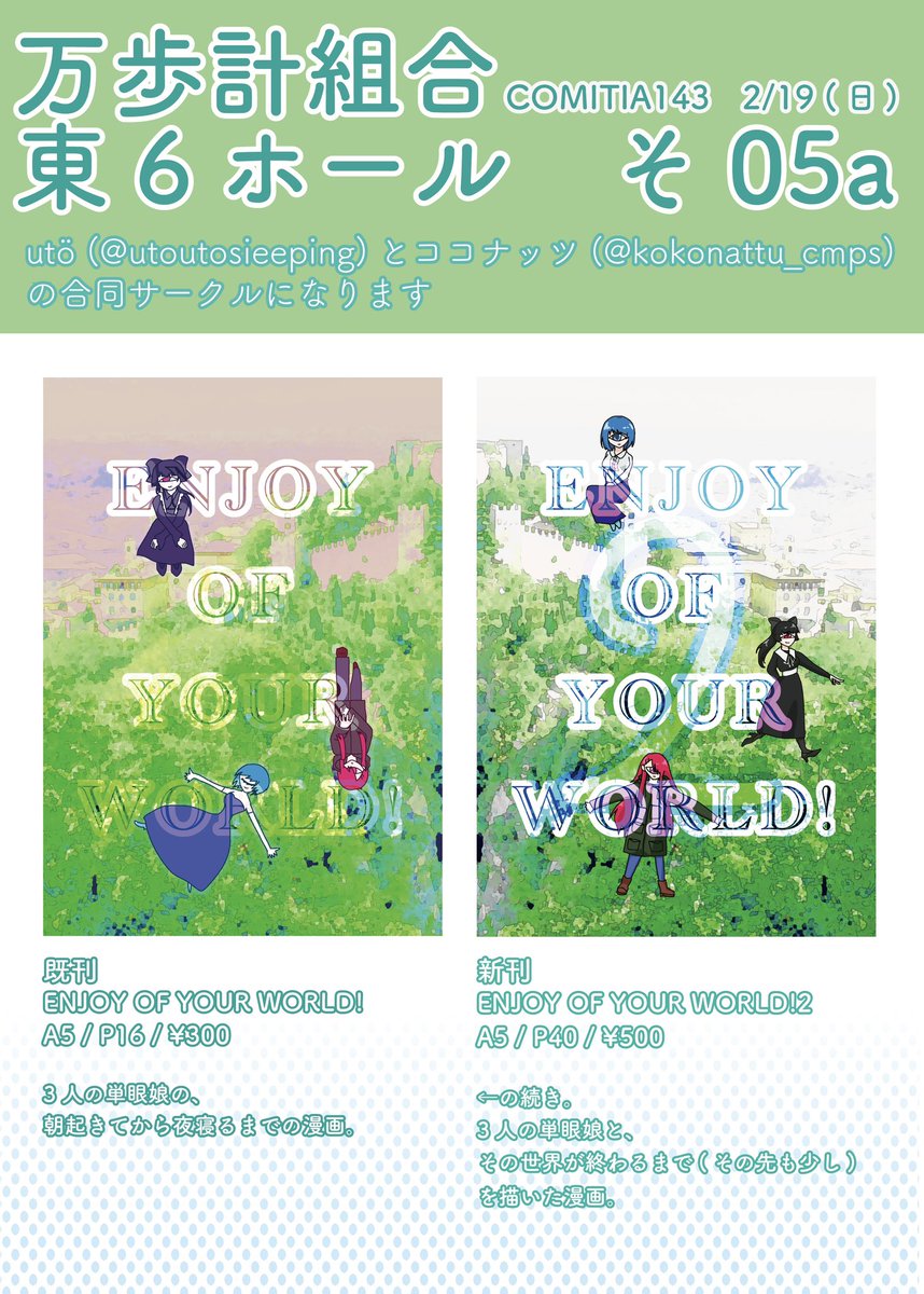2 2 #COMITIA143 お品書きです!本出します!utöさん(@utoutosleeping )との合同サークルです!楽しみです!そ05aです!よろしくお願いします! 23/02/17 18:48