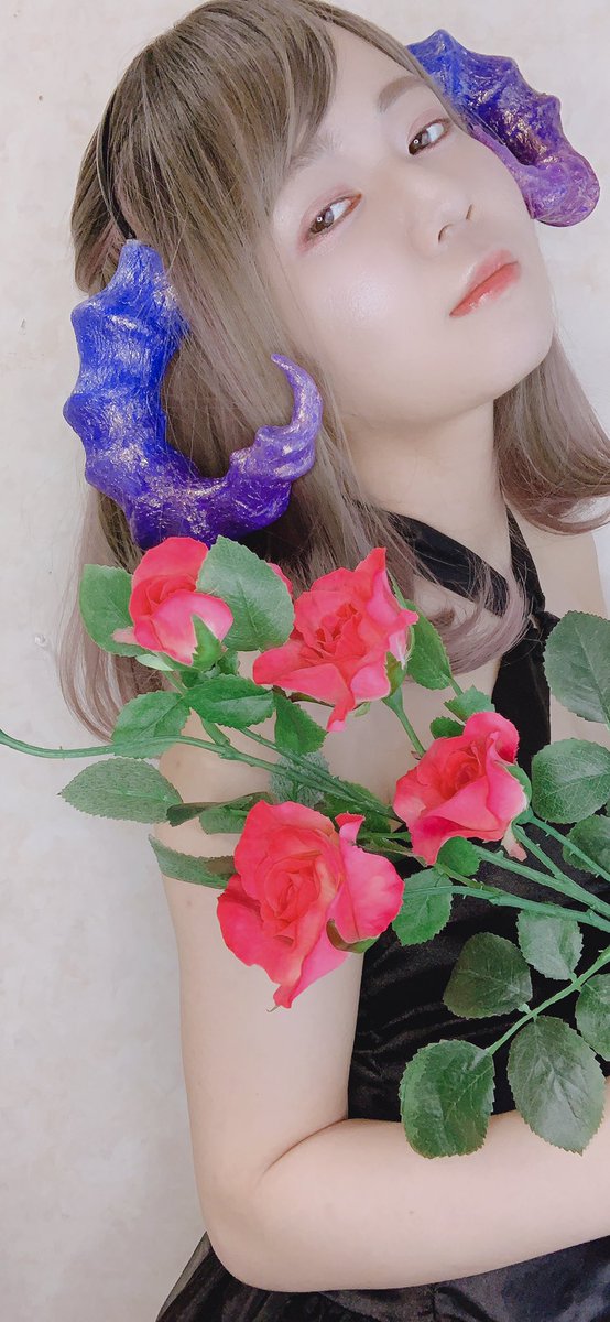 白桃のツノ ピンク色の皮を剥くとじゅわっと甘い香りが漂う白桃のツノ。多分、手にしている杖で人の心を惑わすのが得意。甘えん坊。 #コスプレイヤーと繋がりたい #コスプレ初心者さんと繋がりたい #ツノカチューシャ 着用写真は今日で最後です フォロー&リツイートしてもらえたら嬉しいです