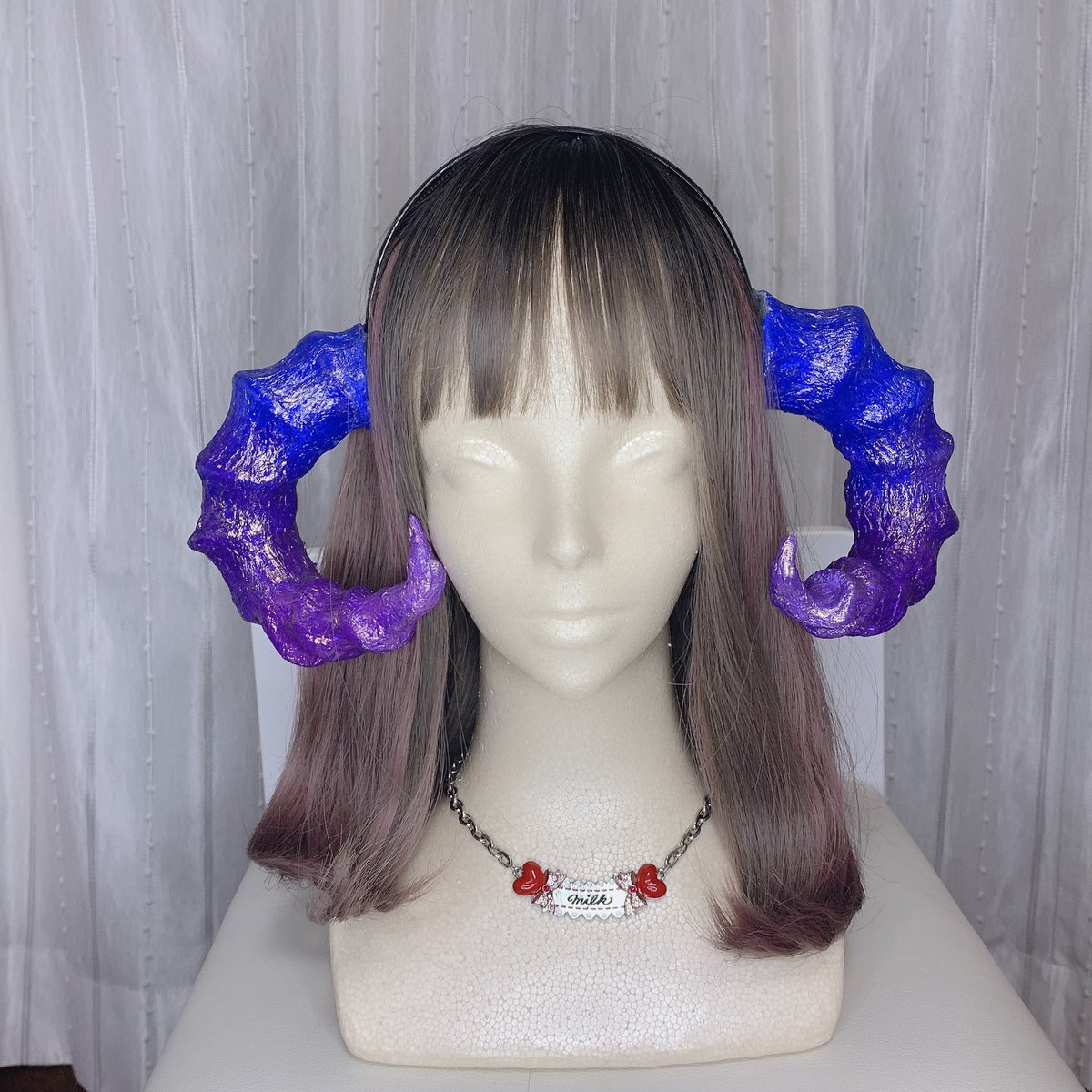 空色ツノカチューシャ 横から見たときに綺麗に巻きが見える形のツノ。多分、横顔が綺麗だったヒツジさんに憧れてる悪魔ちゃん。(私物なので販売はしておりません。) #創作コス #創作コスプレ #コスプレ初心者さんと繋がりたい #コスプレイヤーと繋がりたい フォローしてもらえると嬉しいです