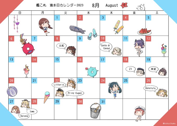 330 859 艦娘進水日カレンダー8月 #艦これ 23/08/01 12:00