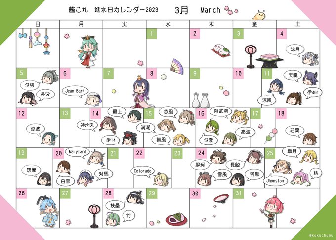 509 1273 艦娘進水日カレンダー3月 #艦これ 23/03/01 12:00