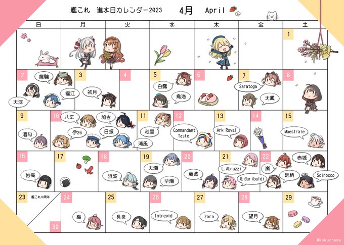 287 779 艦娘進水日カレンダー4月 #艦これ 23/03/31 12:00