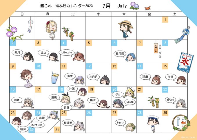 574 1516 艦娘進水日カレンダー7月 #艦これ 23/07/01 12:00