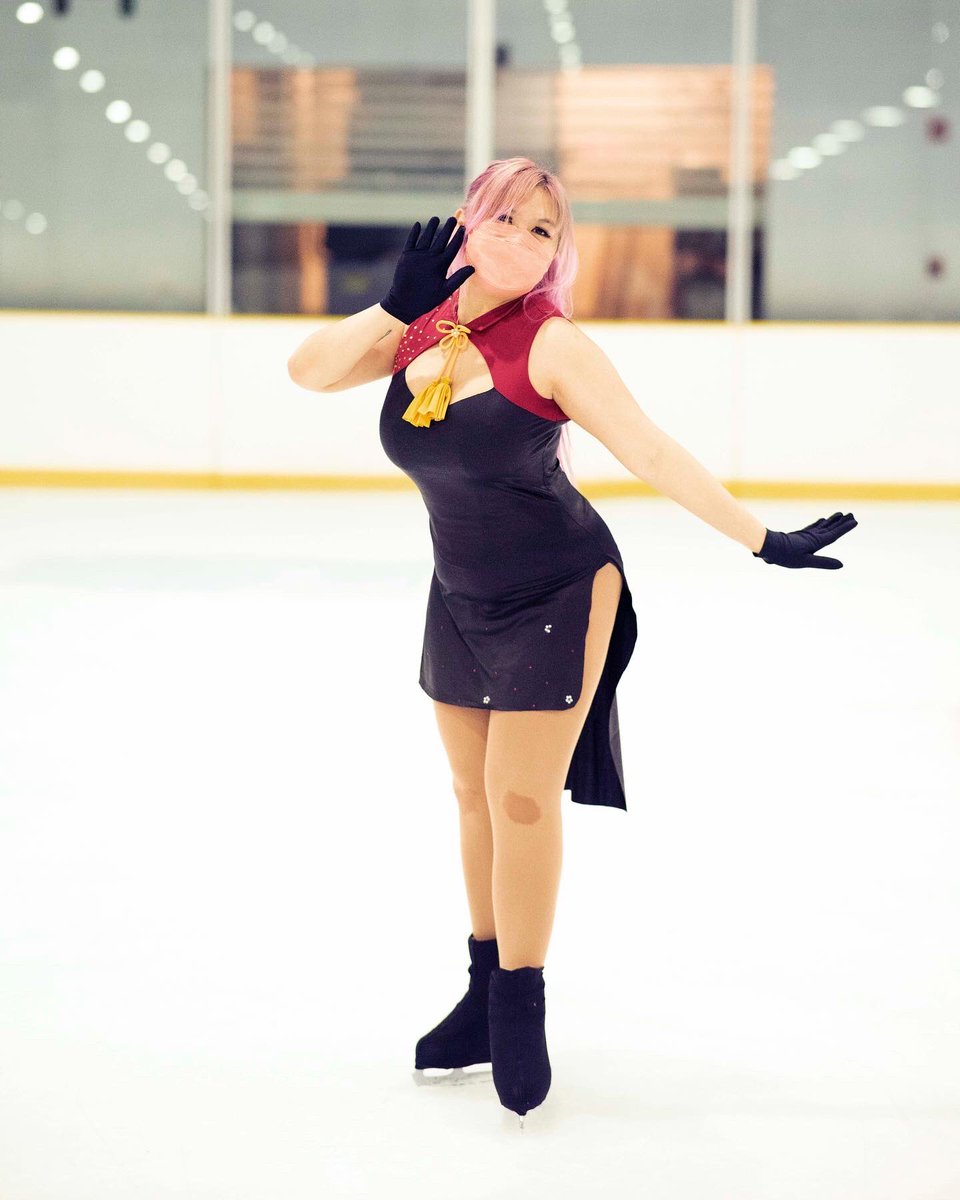 Cosplay x Figure Skating Hu Tao cosplay WIP Based on Hu Tao fanart from zerochan.net entry by Doopliss (?). #zerochan #doopliss #hutao #cosplay #cosplaywip #genshinimpact #hutaocosplay #fanart #hutaofanart #sewing #sewingproject
