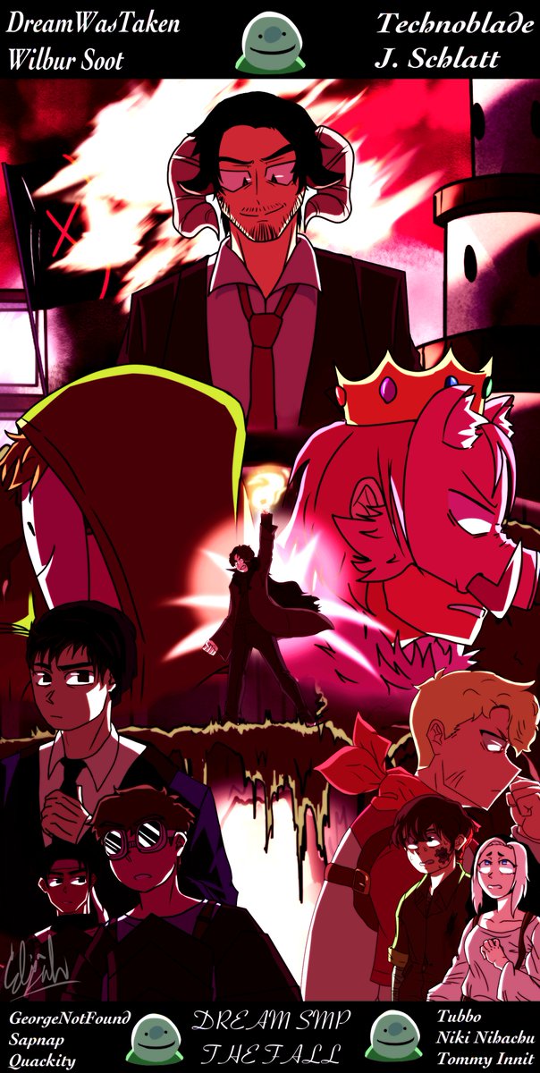 The Fall. (Characters: Quackity, Technoblade, Tommyinnit, Tubbo, Niki Nihachu, Dream, Sapnap, GeorgeNotFound and JSchlatt) #dreamsmp #dreamsmpwar #dreamsmpfanart #sleepyboisincfanart #dreamteamfanart #jschlattfanart #quackityfanart #FANART
