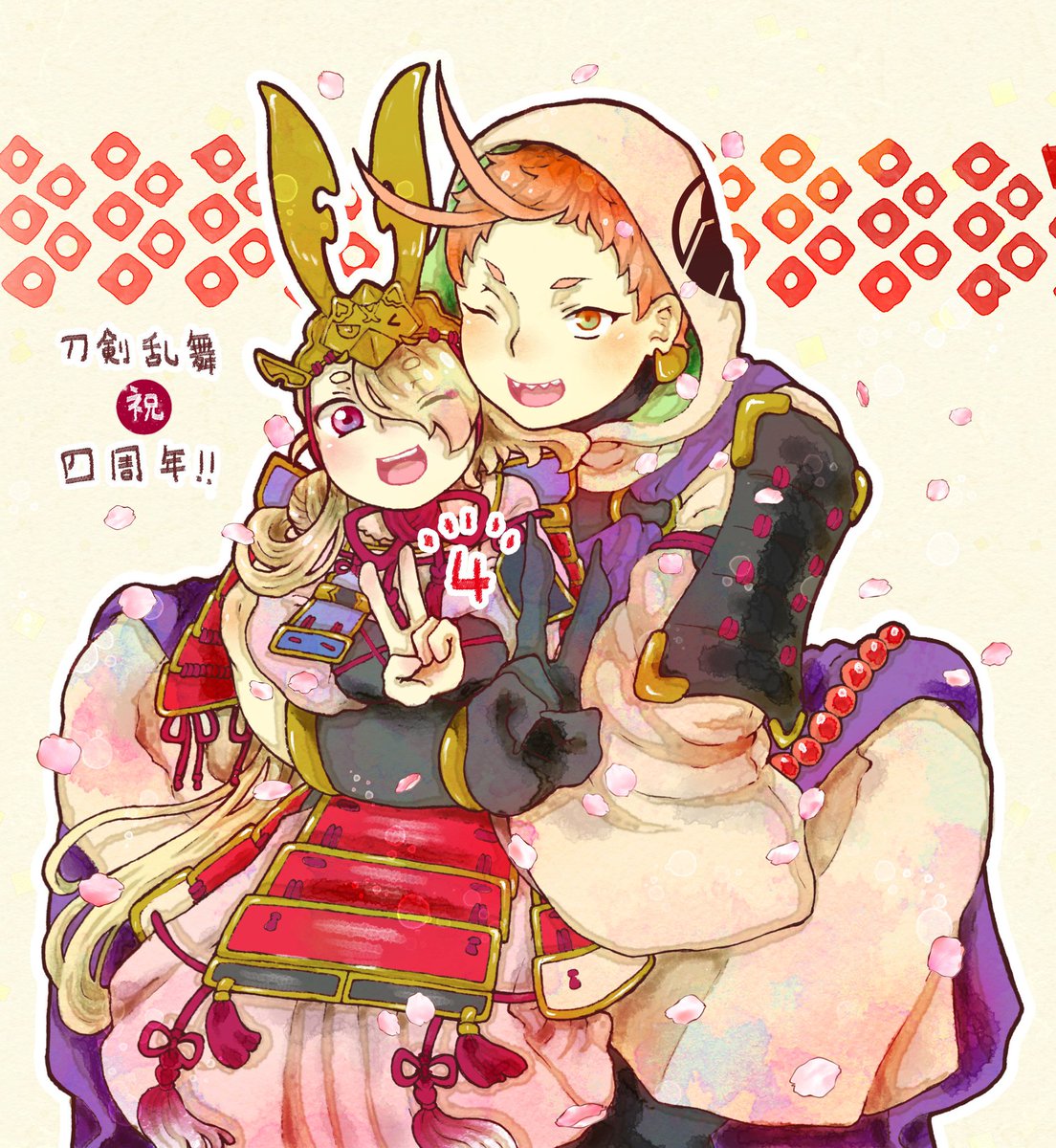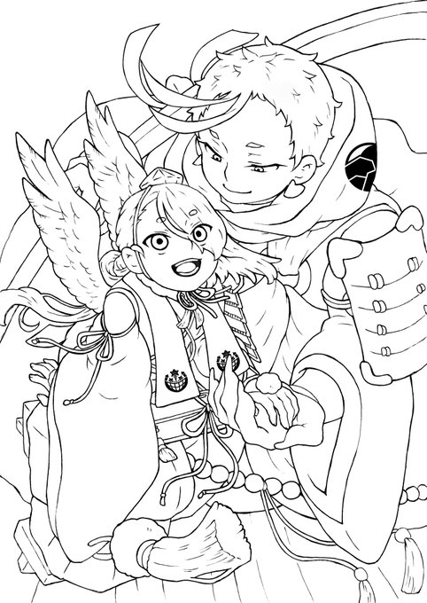 #私が描いた今剣を置いておくので疲れた時に見て癒されてください #私が描いた岩融を置いておくので疲れた時に見て癒されてください 再度素敵タグ便乗させてください!主従は二振り揃えば癒し効果倍増ですから!(*´∇`*)