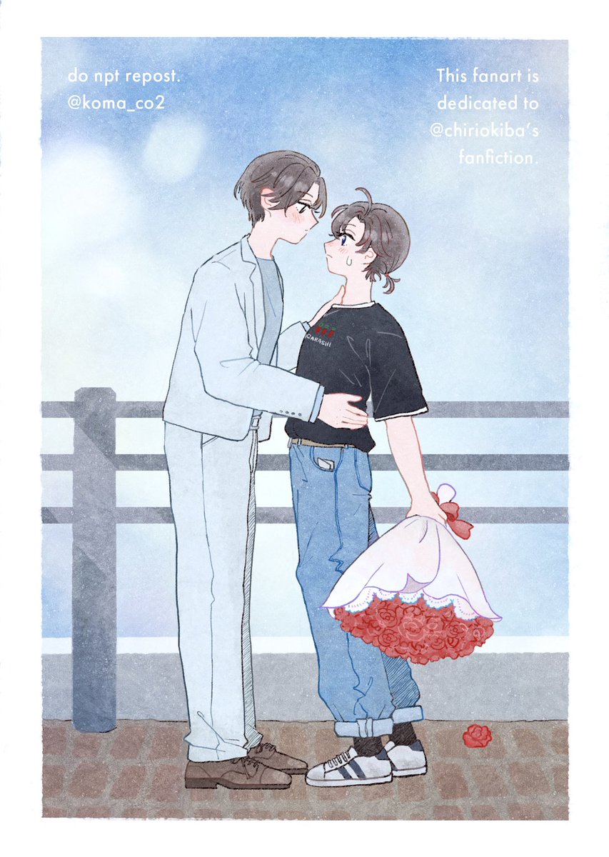 # いいねしてくれた人の画像欄覗いて素敵絵を私の絵柄で書いてもいいですかタグ🏷より。 とても好きなちりさんの忘羨小説「暴走した藍忘機に外堀を埋められる話」の一場面を描かせていただきました☺️🌹 藍湛のスピード感と流され魏嬰の掛け合いが微笑ましくにっこりしてしまうとても素敵なお話です🥰