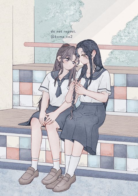 ⚠️女体化 現代AU忘羨 第一ボタンまで留めて、キャミソールのレースが見えてる、スカートの丈が短い、脚を開いて座らないで等々、感情が渦巻いて上手く言葉にならない風紀委員の藍忘機ちゃんと、身体に熱が篭りやすい魏無羨ちゃん(夏バテ気味)…