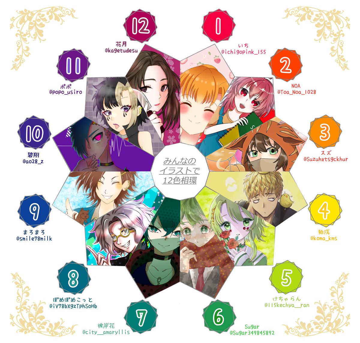 #みんなのイラストで12色相環 いち🍓🎀さんが 企画してくださった企画で4番の篠木敬二を担当させていただきました! 巻き貝が大事に管理していた卵を勝手に飲んで怒られたキノコですw とても楽しく描かせていただきました! 企画してくれたいちさんありがとうございました!