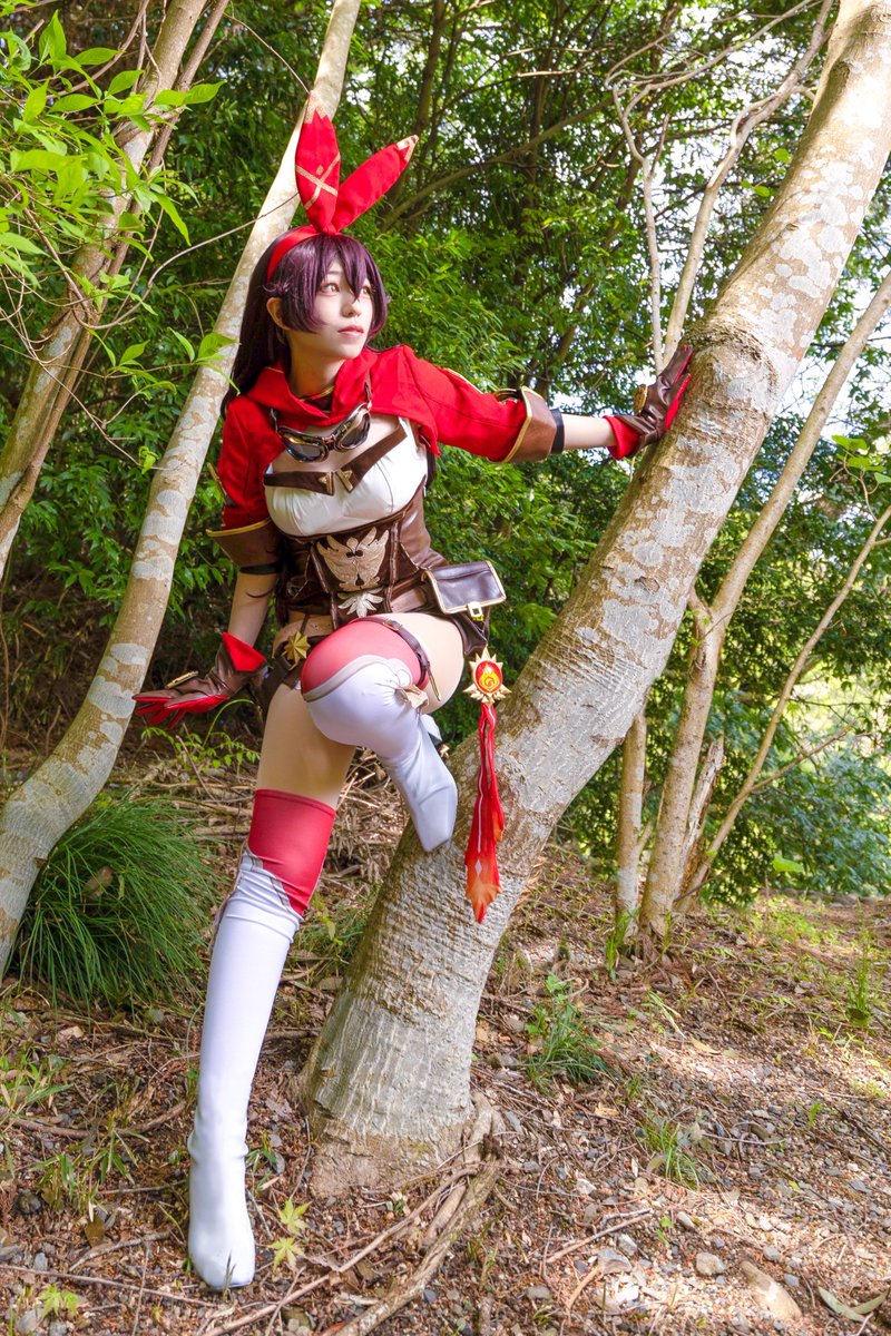 【Cosplay】 原神 アンバー [安柏] 狩りならわたしも得意だよ!どう? わたしの腕を見たくない? それとも…狩りで試合をする?