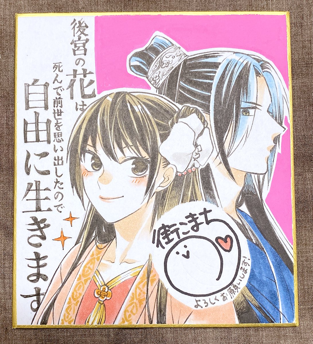 9/20に「後宮の花は死んで前世を思い出したので自由に生きます」の単行本出ますよ〜🌸 色紙描かせてもらった中から1枚✨ どこかしらの書店さんに飾られてます☺️ アナログ久しぶりすぎたー #後宮の花は死んで前世を思い出したので自由に生きます