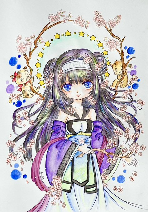 skeb納品しました。 skeb.jp/@komachiac20kv 徐々に桜の木に変身していくリンネをイメージしています。後ろの桜の木が栄えるように背景の色は控えめに描きました。 リクエスト、ありがとうございました!!