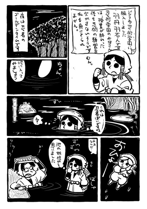 #nin_draw +15分 真夜中短し 走れよ忍者 はにわくん 「これも鍛錬、草臭い」