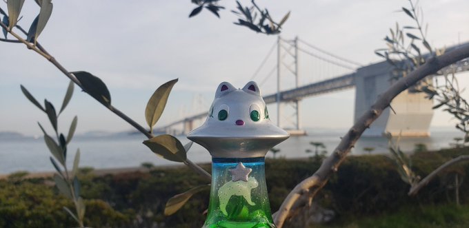 乙幡啓子さんのオリーブニャンと穏やかな瀬戸内海を見て来た✌😄 #アブニャン #オモ写