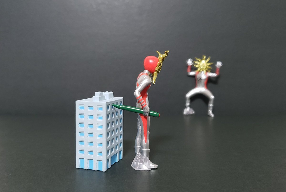 ビルの窓をノールックで突く巨人、タローマン。 #オモ写 #ガチャガチャ