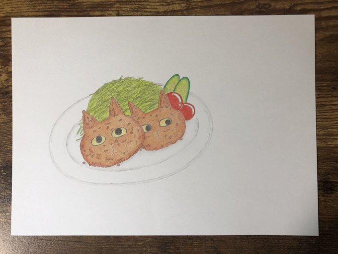 ネココロッケ。アイラインこすぎた。 #イラスト #色鉛筆