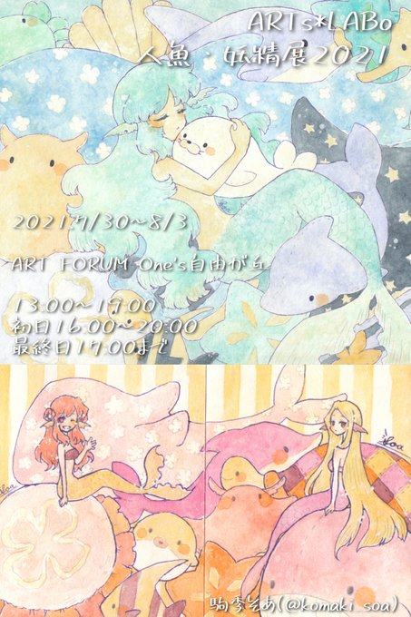 #ARTsLABo さん主催の人魚・妖精展に参加させていただきます!額装1点とATC2点です。 今回も人魚沢山描きました〜よろしくお願いします! 詳しくはこちら↓ creatorsbank.com/ARTs_LABo/even…
