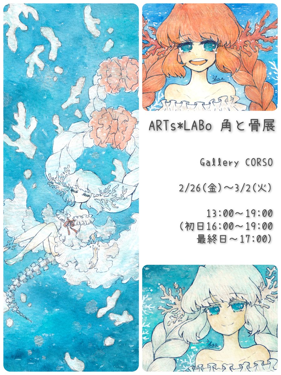 #ARTsLABo さん主催の #角と骨展 に参加します〜! 額装原画1点・ATC2点です。 今回は珊瑚と骨をテーマに描いてみました。よろしくお願い致します! 詳しくはこちら↓ creatorsbank.com/ARTs_LABo/even…